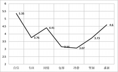 調(diào)查采用6分制等級問卷,結果以平均分、標準分表示各心理品質的發(fā)展水平,以1-6分代表從低到高的發(fā)展趨勢,6分為滿分。