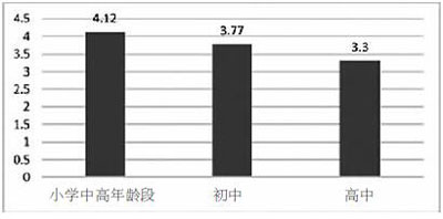 兒童專注自己事情的心理品質在小學中高年段、初中和高中表現(xiàn)出明顯差異,小學生專注品質分值最高,為4.12分,到高中生降為3.3分。這個變化有兩方面的解釋。一是隨著年齡的增加兒童注意力的集中品質有所下降,更容易分散;二是隨著年齡的增加,兒童注意力分配水平能力在提升。