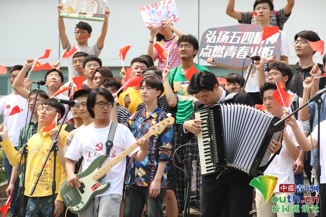 4月27日,四川農(nóng)業(yè)大學團委主辦,大學生藝術團電聲樂團、管樂團、民樂團和演唱團承辦的“新長征路上的搖滾”快閃活動舉行,超燃的樂隊,悅耳的歌聲,恢弘的管樂,曼妙的舞姿和清新的民樂先后演繹,藝術表演交織、交融,對國家的深情貫穿始末。三百余名同學駐足參與,他們揮舞著現(xiàn)場的國旗,舉起愛國標語,詮釋著川農(nóng)學子的愛國情懷,向百年前的五四先驅致敬,向繁榮昌盛的偉大祖國點贊。