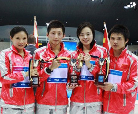 中國(guó)體壇的“常勝之師”乒乓球隊(duì)一向是中國(guó)軍團(tuán)在奧運(yùn)會(huì)上最穩(wěn)定的金牌來源。此役兵發(fā)倫敦,雖然遭遇“先單打、后雙打”的不利賽制,但中國(guó)隊(duì)的信心卻并未受到影響。正如領(lǐng)隊(duì)黃飚此前所言:“能拿多少(金牌),就要拿多少。”由于整體實(shí)力超群,“世界打中國(guó)”的格局恐怕不會(huì)在本屆奧運(yùn)會(huì)上發(fā)生改變,因此男團(tuán)、女團(tuán)金牌事實(shí)上已經(jīng)基本被中國(guó)隊(duì)提前鎖定。