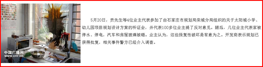 巧合的是,就在幾天之前,在河北欒城,4位業(yè)主代表參加了由石家莊市規(guī)劃局欒城分局組織的關于太陽城小學、幼兒園項目規(guī)劃設計方案的聽證會,并代表100多位業(yè)主勇敢的提了反對意見。令人驚訝的是,本該自主表達民意的舞臺,卻出現(xiàn)不和諧的場景。提出反對意見的業(yè)主代表慘遭報復,甚至連家都不敢回!褚馀c代表意見出現(xiàn)明顯不同,是代表沒當好,還是代表不敢說不好? |