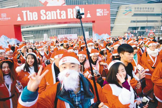 12月18日,“圣誕老人跑”主題活動在沈陽舉行。市民裝扮成圣誕老人參加冬日跑步活動。沈陽日報、沈陽網(wǎng)記者張文魁攝