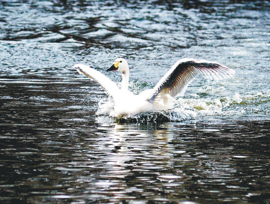 平陸黃河濕地位于秦晉豫黃河金三角地帶。這里背風(fēng)向陽(yáng)、氣候溫暖,6000多公頃的濕地都是大天鵝棲息的樂(lè)園。從每年10月底開(kāi)始,天鵝陸續(xù)來(lái)到這里,一直待到第二年3月。高峰時(shí)天鵝數(shù)量達(dá)1萬(wàn)余只,這里因此被稱為“中國(guó)大天鵝之鄉(xiāng)”。