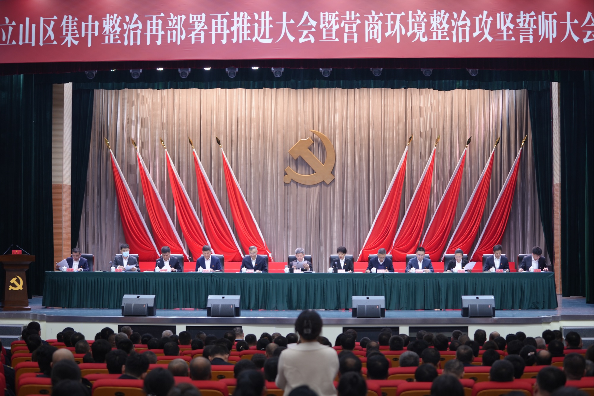 11月21日,遼寧鞍山立山區(qū)集中整治再部署再推進(jìn)大會(huì)暨營商環(huán)境整治攻堅(jiān)誓師大會(huì)在區(qū)文化活動(dòng)中心召開。立山區(qū)委書記韓松出席會(huì)議并講話,區(qū)委副書記、區(qū)長張晨子主持會(huì)議,區(qū)人大常委會(huì)主任王峨、區(qū)政協(xié)主席丁忠寶、立山經(jīng)濟(jì)開發(fā)區(qū)管委會(huì)主任付天財(cái)?shù)瘸鱿瘯?huì)議。會(huì)議參會(huì)范圍延伸至基層一線執(zhí)法人員,確保會(huì)議精神一貫到底、直插基層,全面落實(shí)到服務(wù)前沿。