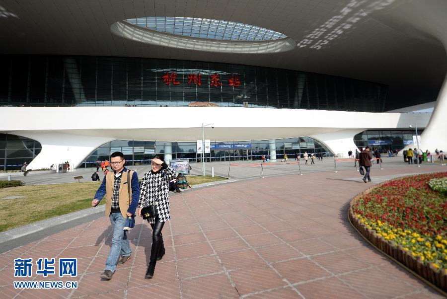 2月7日,兩位旅客穿過(guò)杭州東站站前廣場(chǎng)。往年熙熙攘攘的站前廣場(chǎng)平靜了許多。整潔的候車廳、人流稀松的售票廳、有序等待的旅客——這是記者在杭州東站看到的情景。今年春運(yùn),在浙江杭州東站,你擁我擠、人滿為患的情景不見(jiàn)了,旅客進(jìn)站、候車、乘車更加順暢。上海鐵路局稱,高鐵在春運(yùn)中的客發(fā)比重增加,轉(zhuǎn)運(yùn)率也大大提高,“改變了傳統(tǒng)的春運(yùn)模式”。據(jù)悉,杭州鐵路部門節(jié)前將增開(kāi)60多對(duì)臨客,其中高鐵動(dòng)車數(shù)大大增加,客發(fā)比重達(dá)60%左右。特別是去年12月10日杭長(zhǎng)高鐵的開(kāi)通打通了長(zhǎng)三角至云、貴、川方向的運(yùn)輸瓶頸,使浙江“民工流”的主要目的地——云貴川渝等方向運(yùn)力大大緩解。今年春運(yùn)鐵路網(wǎng)絡(luò)售票比例近80%,旅客購(gòu)票乘車更加方便。此外,羊年春節(jié)來(lái)得較晚,春運(yùn)客流也呈現(xiàn)分散特點(diǎn)。諸多因素使杭州今年的春運(yùn)變得不再喧鬧。