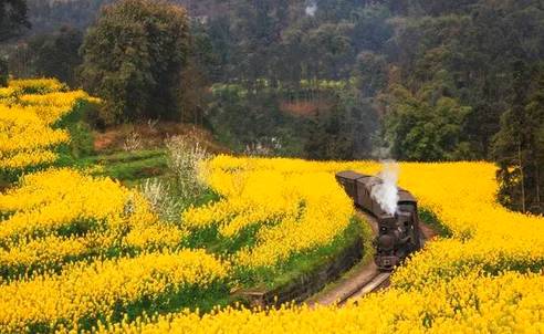 當(dāng)然還不能忘了嘉陽小火車,它是目前世界上唯一的還在營(yíng)運(yùn)的蒸汽式小火車。在這里你可以乘坐老式的蒸汽火車穿梭在油菜花田,簡(jiǎn)直美呆!