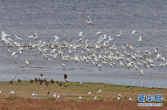 近日,成群的白鷺雛鳥(niǎo)開(kāi)始離開(kāi)巢穴飛到秦皇島海邊濕地覓食,場(chǎng)面壯觀。據(jù)了解,該市近年來(lái)不斷加大沿海濕地保護(hù)力度,每年約有400多種、上千萬(wàn)只候鳥(niǎo)南北遷徙經(jīng)過(guò)這里,還有種類(lèi)數(shù)量可觀的夏候鳥(niǎo)和留鳥(niǎo)在本地繁衍生息,鳥(niǎo)類(lèi)資源豐富。新華社記者楊世堯攝