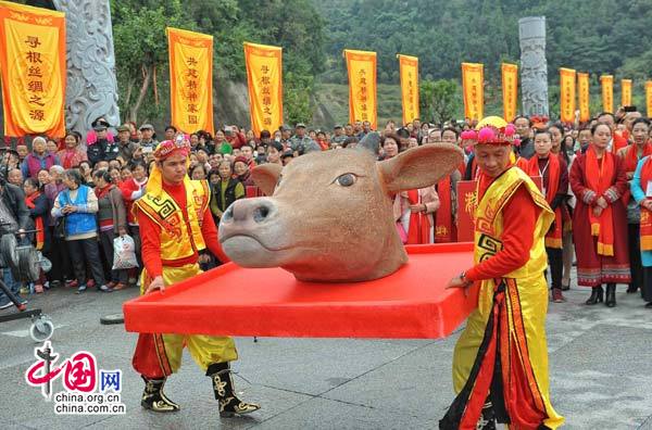 10月15日,為進(jìn)一步弘揚(yáng)華夏母親嫘祖的人文精神,全力構(gòu)建海內(nèi)外炎黃子孫共同的心靈家園,近五千中華兒女代表相聚在四川省綿陽市鹽亭縣參加2016(丙申)年華夏母親嫘祖故里酬蠶節(jié)民間祭祖儀式,禮拜華夏母親嫘祖,祈福中華民族偉大復(fù)興。