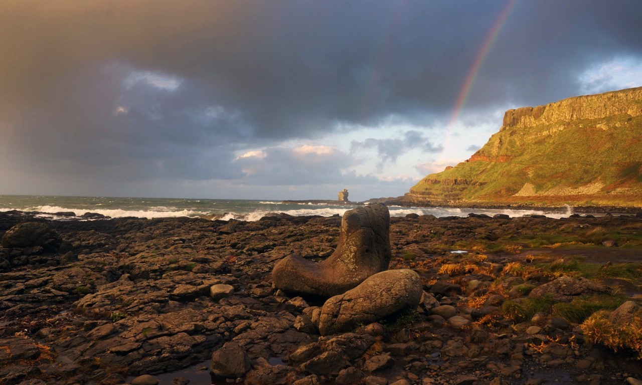 穿過海岸邊的石柱,沿著徒步區(qū)域行走,看到山巒邊被海和風(fēng)雕琢出的“巨人的豎琴”,還有像是被丟落在海邊的“巨人的腳”,當(dāng)我們轉(zhuǎn)頭,迎著一陣及時雨,山崖之巔,出現(xiàn)了雙彩虹,我認(rèn)為那是美好旅行的祝福。