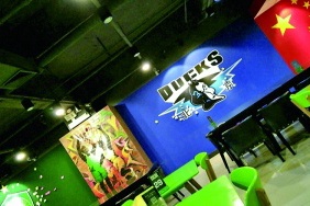 沒溜兒是以國安球迷餐廳為主題的串吧,一進(jìn)門就能看見那個(gè)標(biāo)志性的足球門,還是由這里的球迷老板親手做的。許多北京的球迷有事沒事都會(huì)來這聚聚,聊天侃球。擼串本來就很歡樂,來這兒吃飯的又是球迷居多,更是把沒溜兒的精神貫徹到了整個(gè)氣氛中,經(jīng)常是幾桌并不認(rèn)識的客人喝著喝著大家都成為了朋友。店里有兩臺投影,還專門留出了兩面空白墻面為看球而設(shè)計(jì)。尤其在比賽日,沒溜兒串吧更是變成了國安球迷的第二現(xiàn)場,滿屋子的球迷一起唱隊(duì)歌,為自己的主隊(duì)吶喊的場面十分盛大。