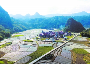 3月13日在廣西河池市羅城縣喬善鄉(xiāng)板團(tuán)村航拍的田園景色。 (新華社發(fā))