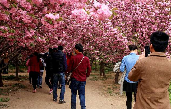 “我們就是帶著孩子來看看花啊,春天到了。”
