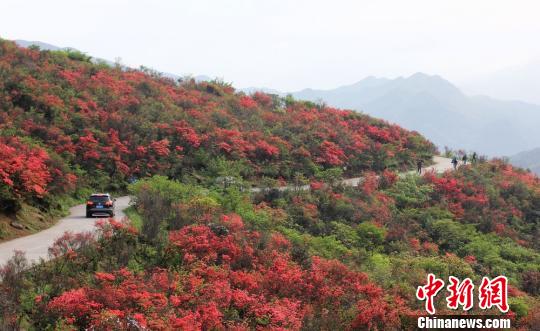 游客自駕前來(lái)欣賞杜鵑!『渭t!z