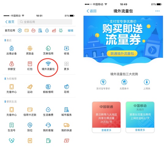 境外最常碰到一個(gè)問題是:手機(jī)漫游上網(wǎng)太貴,卻又不方便換當(dāng)?shù)氐碾娫捒āF鋵?shí),可以用支付寶解決。支付寶有個(gè)境外流量包服務(wù),你可以在里面一鍵購買港澳臺,甚至美國、日本和韓國的流量包,無需換卡就能在境外能上網(wǎng),支持的地區(qū)最低僅6元/天。
