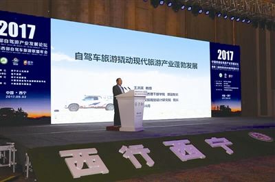 在“中國(guó)西部自駕游產(chǎn)業(yè)發(fā)展論壇”大會(huì)現(xiàn)場(chǎng),嘉賓中國(guó)旅游干部管理學(xué)院原院長(zhǎng)、中國(guó)旅游學(xué)科創(chuàng)始人之一的王洪濱教授做主題演講。張艷艷 攝