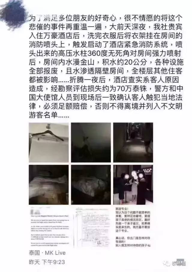 一家旅行社近日曝出一則驚人消息:“中國(guó)游客在泰國(guó)豪華酒店晾衣服,觸發(fā)消防噴頭遭酒店索賠14萬(wàn)”。