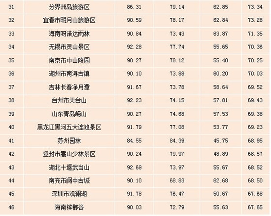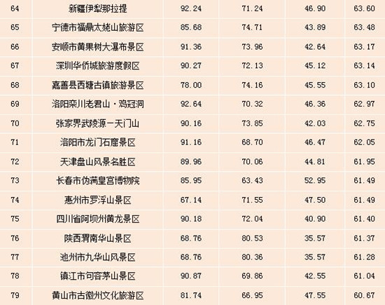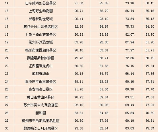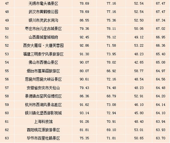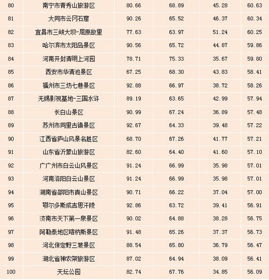 表:全國5A級景區(qū)雙微運(yùn)營效果排行榜(Top100)