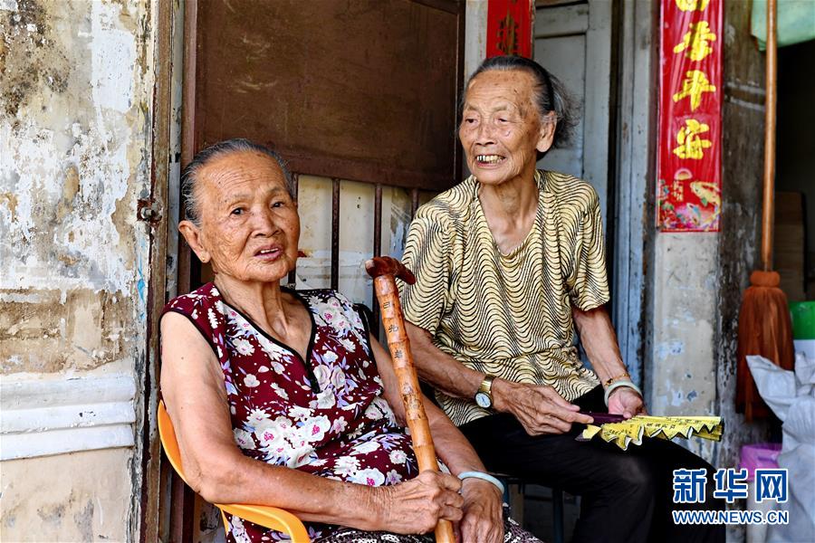 老人在鼓浪嶼家門前休息聊天(8月29日攝)。被列入世界文化遺產(chǎn)名錄的廈門鼓浪嶼以其風(fēng)格迥異、中西合璧的建筑,富有特色的商鋪吸引了四面八方的游客。 新華社記者 張國俊 攝