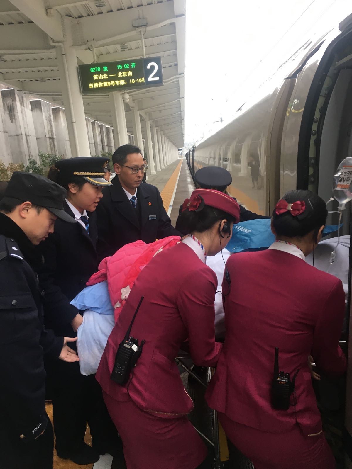 27日14時30分,合福高鐵旌德站售票員李陽接到了旅客求救電話,需要緊急送一名突發(fā)腦溢血患者到外地就醫(yī),因旌德沒有腦外科醫(yī)療救治條件,旌德的醫(yī)生建議48小時內(nèi)必須送到有條件醫(yī)院進行手術(shù)救治。否則,病人有生命危險! 病人情況緊急!李陽立即通知客運值班員杜娟。杜娟得知情況后,迅即報告車站站長胡宏明。胡宏明啟動應(yīng)急預案。