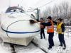 2018年1月4日,中國鐵路上海局集團(tuán)公司合肥南動(dòng)車運(yùn)用所內(nèi),職工正在為即將上線運(yùn)行的動(dòng)車組進(jìn)行掃雪除冰。(央廣網(wǎng)發(fā) 謝冰飛攝) -