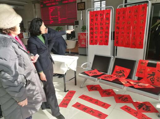 為提升服務(wù)亮點(diǎn),發(fā)揮黨員模范帶頭作用,助力“2018年一季度開門紅”,該行有書法造詣的多名黨員,到多個(gè)銀行網(wǎng)點(diǎn)現(xiàn)場(chǎng)為客戶書寫春聯(lián)。當(dāng)一幅幅春聯(lián)在銀行大廳內(nèi)鋪開時(shí),辦理完業(yè)務(wù)的客戶無(wú)不駐足觀賞,紛紛領(lǐng)取春聯(lián)。一位市民拿到春聯(lián)說(shuō)道:“多年沒(méi)有見過(guò)手寫春聯(lián)了,手寫的年味更強(qiáng)”。另一位市民高興地領(lǐng)了4副對(duì)聯(lián),說(shuō)要給兒子、女兒門口都貼上。