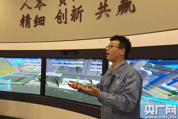 工作人員演示九江石化智能工廠三維數(shù)字化平臺。央廣網(wǎng)記者高藝寧_攝