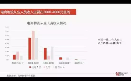 2016年5月,北京交通大學(xué)、阿里巴巴研究院、菜鳥網(wǎng)絡(luò)聯(lián)合發(fā)布《全國社會(huì)化電商物流從業(yè)人員研究報(bào)告》顯示,53.4%的快遞站點(diǎn)員工月平均工資在2000-4000元;近八成一線快遞員日均工作9-10小時(shí),有些甚至12小時(shí)以上。