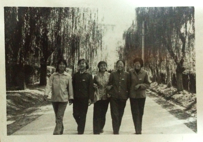 1979級考生虞立紅(左二)與同學在大學校園合影