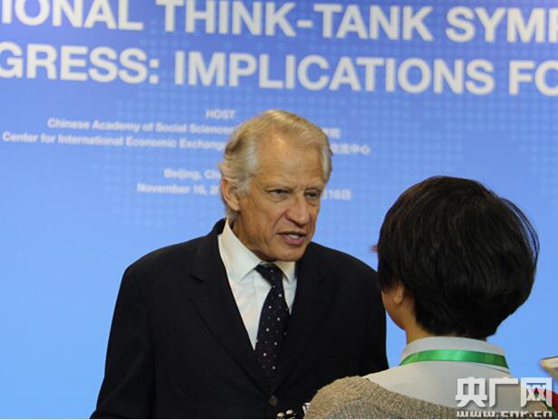 法國前總理多米尼克·德維爾潘在接受記者采訪(央廣網(wǎng)記者 曹宇 攝)