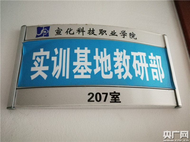 現(xiàn)代管理大學(xué)校園內(nèi)一間辦公室門口掛有“宣化科技職業(yè)學(xué)院實(shí)訓(xùn)基地教研部”字樣的門牌