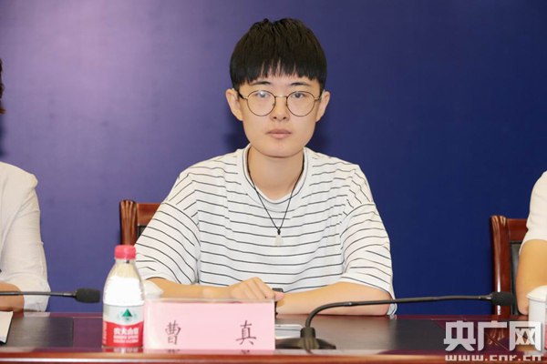 曹真在“我來北京上大學(xué)”殘疾大學(xué)生座談會(huì)上。(央廣網(wǎng)記者王晶 攝)
