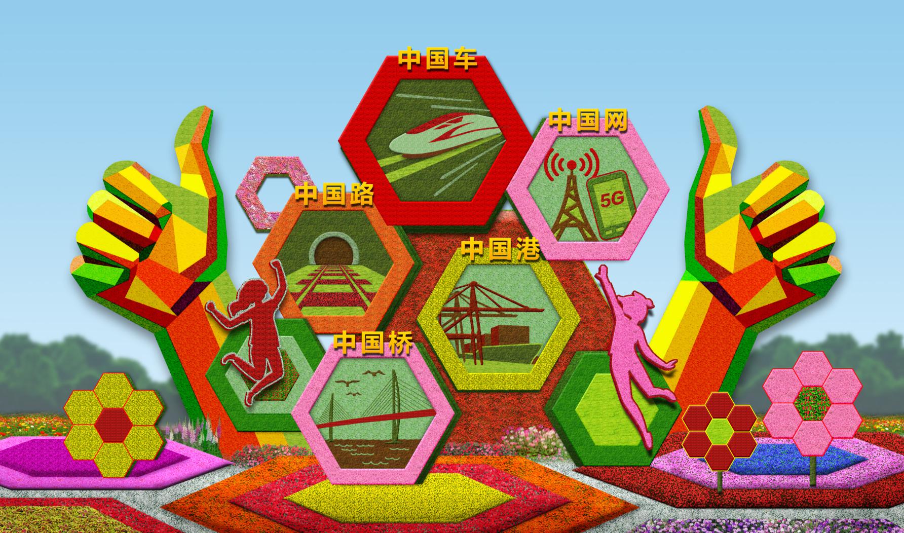 東單西南角的“輝煌中國(guó)”主題花壇,謳歌了偉大祖國(guó)從站起來(lái)、富起來(lái)到強(qiáng)起來(lái)的偉大飛躍,展現(xiàn)輝煌中國(guó)新時(shí)代新風(fēng)貌。