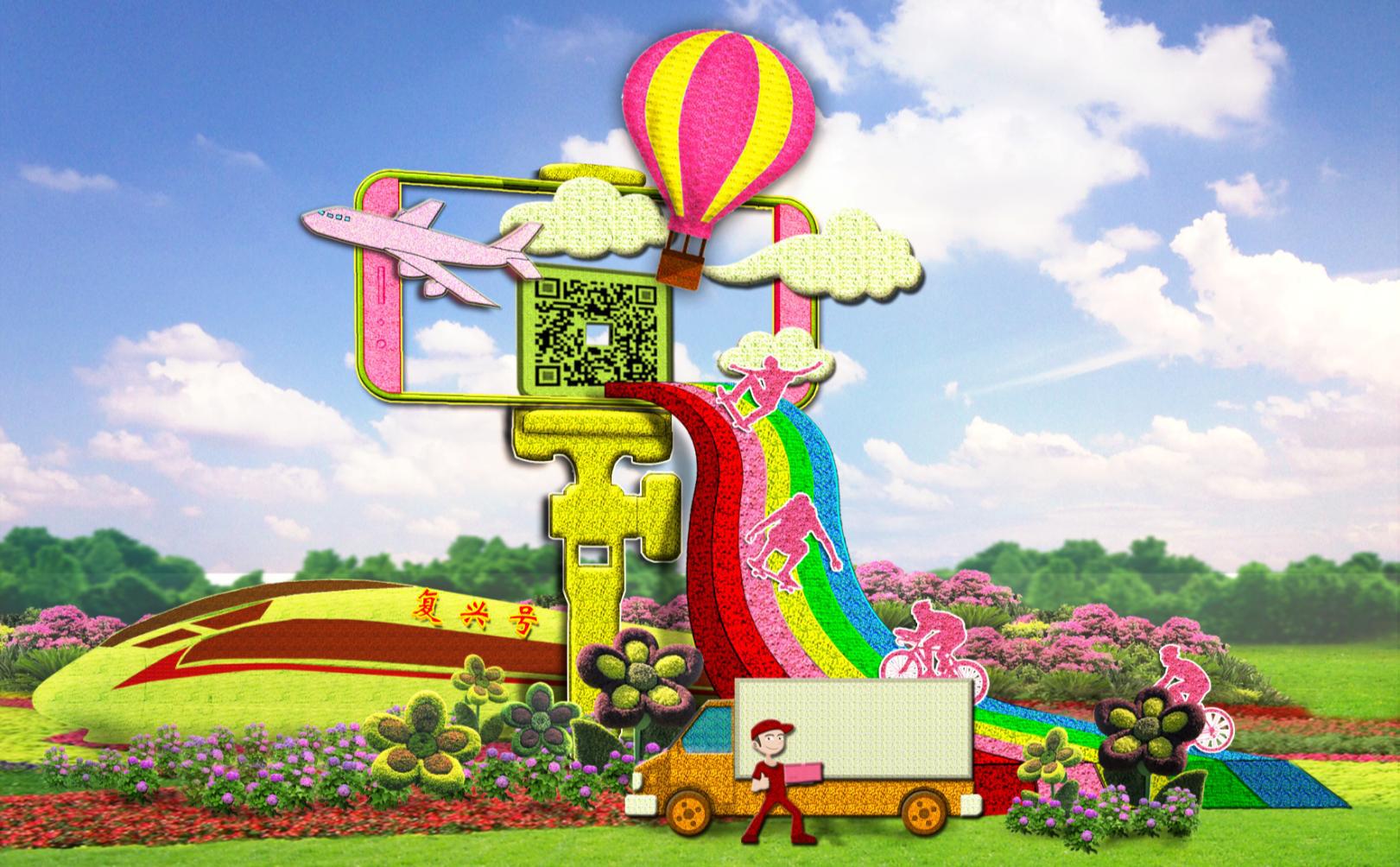 西單西北角布置的“幸福生活”主題花壇,寓意通過(guò)精準(zhǔn)扶貧,建設(shè)生態(tài)宜居的美麗鄉(xiāng)村,走中國(guó)特色社會(huì)主義鄉(xiāng)村振興道路,全面建成小康社會(huì)。