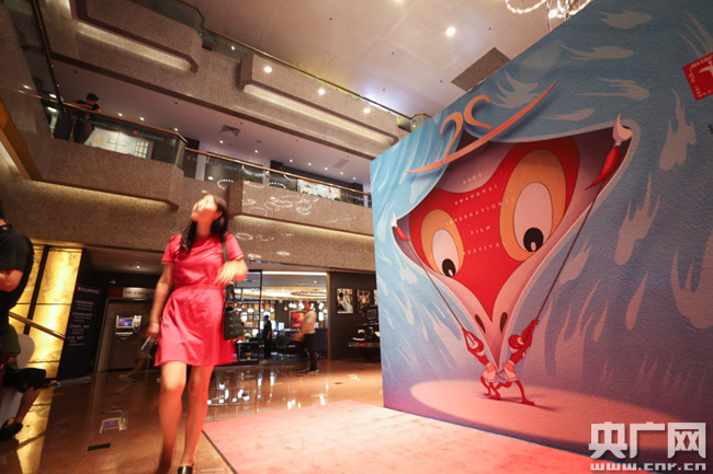 位于上海銀星皇冠酒店內的海報形象(央廣網記者 韓靖 攝)
