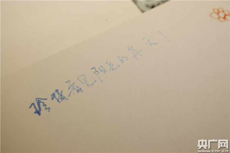 讓不少人印象深刻的,是一對(duì)母子留下的繪畫(huà)留言。剛上小學(xué)一年級(jí)的女兒說(shuō):“媽媽?zhuān)煤谘!”媽媽安慰她道:“寶貝,要?jiān)持!”旁白寫(xiě)下一句“黑暗的盡頭是光明!”