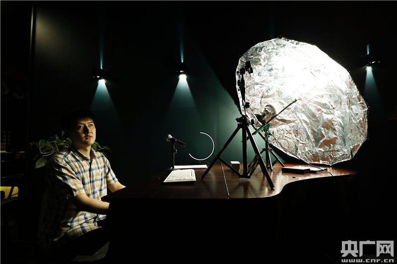 每晚9點(diǎn),周昊雨在抖音上進(jìn)行直播,為網(wǎng)友演奏鋼琴、講述餐廳故事(央廣網(wǎng)記者 張凱航 攝)