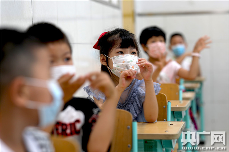8月29日,北京市通州區(qū)玉橋小學(xué),一年級新生正在學(xué)習(xí)如何洗手(央廣網(wǎng)記者張佳琪 攝)