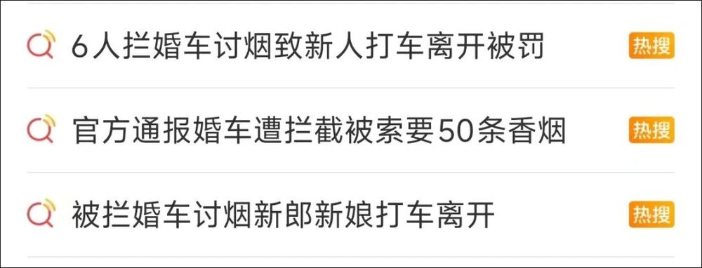 近日,“攔婚車討煙致新人打車離開(kāi)”一事,引發(fā)網(wǎng)友熱議。話題登上微博熱搜榜。
