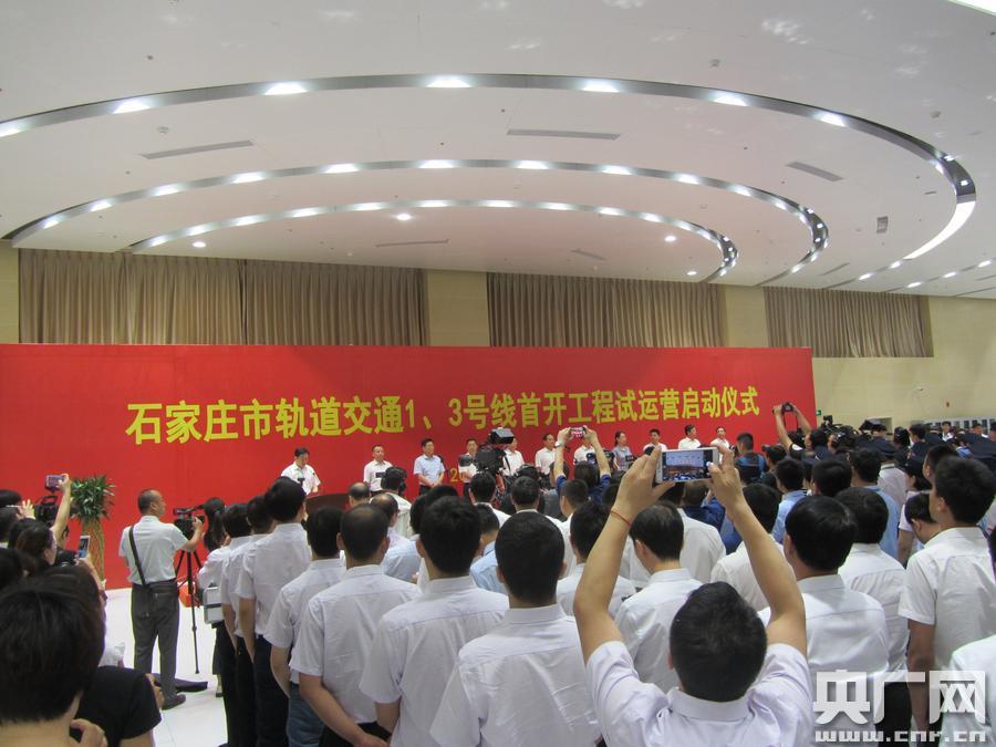 石家莊地鐵今天(6月26日)正式試運(yùn)營(央廣網(wǎng)記者 明慧 攝) 央廣網(wǎng)石家莊6月26日消息(記者明慧)今天上午9:20分,隨著石家莊市委副書記,市長鄧沛然一聲宣布,石家莊地鐵正式載客試運(yùn)營。今天啟動(dòng)的是地鐵1號(hào)線一期和3號(hào)線一期首開段。總工程全長30.3公里。 經(jīng)過完成建設(shè)施工、設(shè)備安裝調(diào)試、3個(gè)月空載試運(yùn)行、乘客試乘體驗(yàn)和試運(yùn)營整體準(zhǔn)備。試運(yùn)行8項(xiàng)指標(biāo)滿足國標(biāo)要求,并已順利通過了13個(gè)專項(xiàng)驗(yàn)收和試運(yùn)營基本條件評(píng)審等工作。 石家莊市是全國第29個(gè)開通的城市, 做為河北省首個(gè)開通地鐵的城市,承載著河北人民的期盼,標(biāo)志河北“地鐵時(shí)代”的到來,這為緩解城市交通壓力,提升城市品位,拉動(dòng)經(jīng)濟(jì)增長,有著深遠(yuǎn)影響。 石家莊市經(jīng)國家批準(zhǔn)的軌道交通線網(wǎng)方案為6條線組成的“大放射、小方格”布局,其中,骨干線3條,輔助線3條,目前在建開通的為1號(hào)線一期和3號(hào)線一期中間段30公里,主要解決石家莊主城區(qū)東西向及新火車站交通需求。 石家莊地鐵列車采用的是被譽(yù)為地鐵家族“巨無霸”的A型地鐵列車,除了運(yùn)送乘客多、乘坐舒適之外,也是全球防火等級(jí)最高、國內(nèi)最靜音的地鐵。同時(shí),石家莊地鐵在現(xiàn)代時(shí)尚、簡約實(shí)用的設(shè)計(jì)風(fēng)格中充分融入了紅色歷史、文化元素,無論是車票、站臺(tái)還是車廂內(nèi),乘客都可以通過圖文、藝術(shù)墻、雕塑等形式,感受石家莊的歷史文化底蘊(yùn)和發(fā)展的活力。