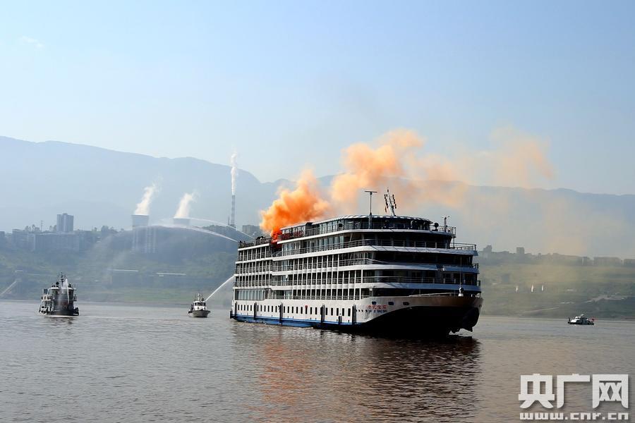 長(zhǎng)江客船綜合應(yīng)急處置演練在重慶忠縣舉行(央廣網(wǎng)發(fā) 彭南祥攝)