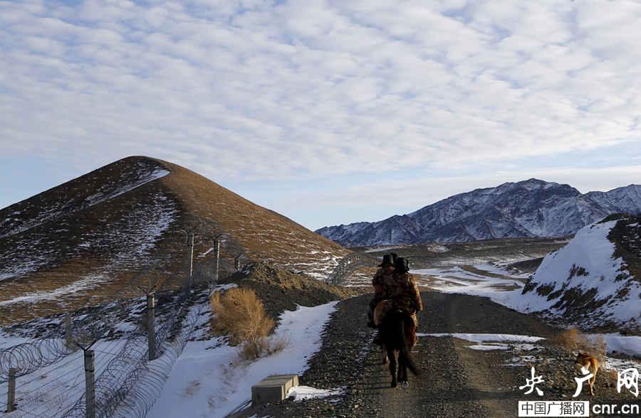 11月底的塔克什肯已是銀裝素裹,最低氣溫已達到零下35度。有的邊境地區(qū)已被大雪覆蓋,道路不通。為加強邊邊境管控,防止發(fā)生涉外問題,塔克什肯邊防連組織巡邏分隊乘馬對中蒙邊境實施巡邏。官兵們在邊境線上時而騎馬穿越蘆葦叢,時而牽馬通過被雪覆蓋的山溝,還不時停下來定點觀察,構成一道靚麗的風景線。