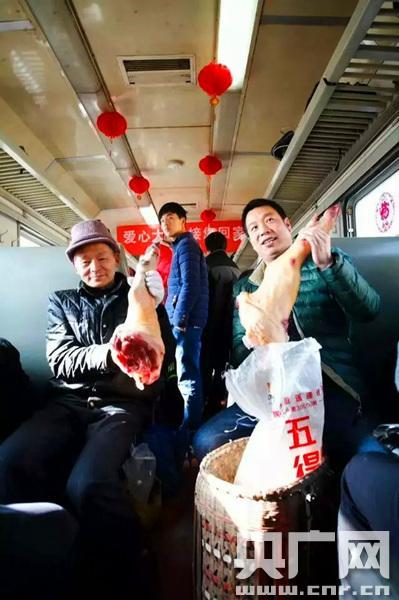 央廣網(wǎng)西安1月21日消息(記者劉濤 通訊員陳燕 丁毅)遠(yuǎn)山含黛,綠水蜿蜒,還有不時(shí)閃過(guò)的麥田,乘坐在漢中至陽(yáng)平關(guān)8361/8362次“小慢車(chē)”上,望著窗外,滿眼盡是這樣秀麗的景象。但最吸引旅客的目光,卻是車(chē)廂內(nèi)迎面襲來(lái)的喜慶年味。
