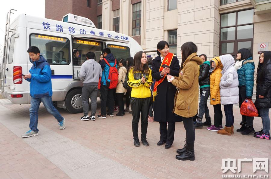 太原南站將鐵路移動售票車開進22所大專院校 讓學生少跑路、少受凍(央廣網(wǎng)記者 李楠 攝)