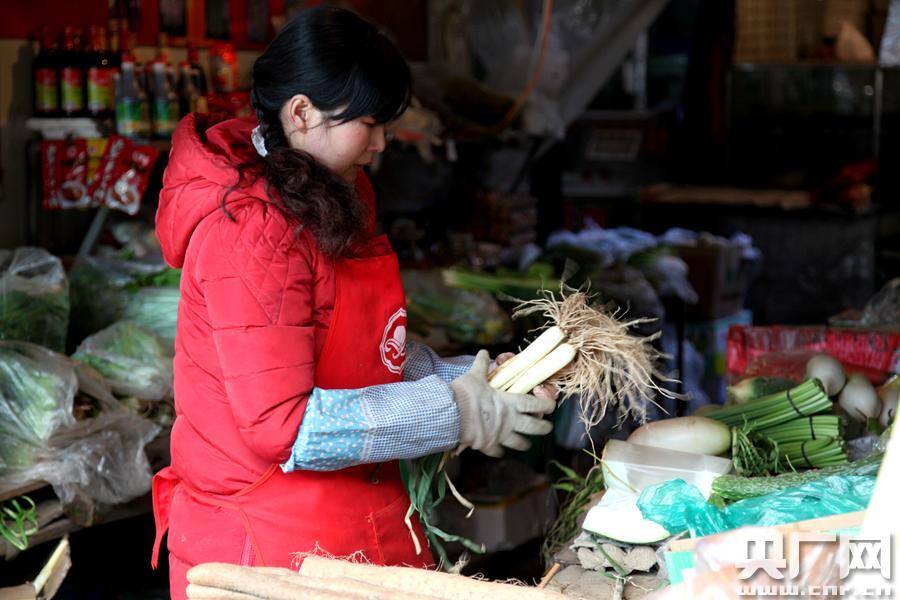菜商整理蔬菜(央廣網(wǎng)記者 廉軍 攝)