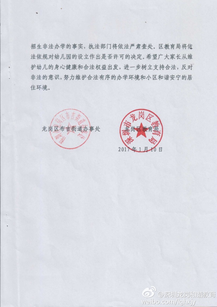 今天記者通過(guò)“深圳龍崗和諧教育”的微博看到了深圳龍崗教育局2月16日發(fā)出的情況通報(bào):