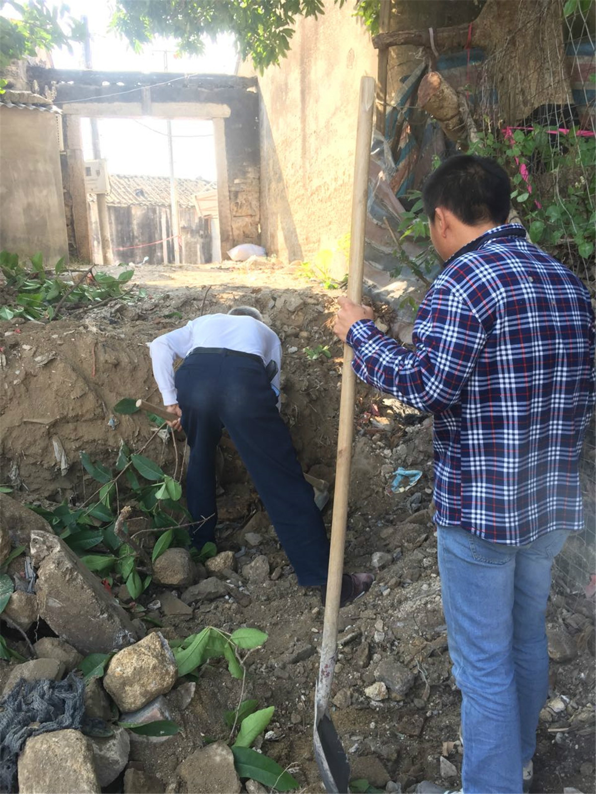 在清理河道兩邊環(huán)境衛(wèi)生時,得到村里老人的支持,有一位老者提供了重要線索,“小時候,他爺爺就常跟他講述樟林古港的故事”,老人來到新興街東門附近,說:“這里,可能就是當(dāng)年的古碼頭,人們從這里登船,去過番!