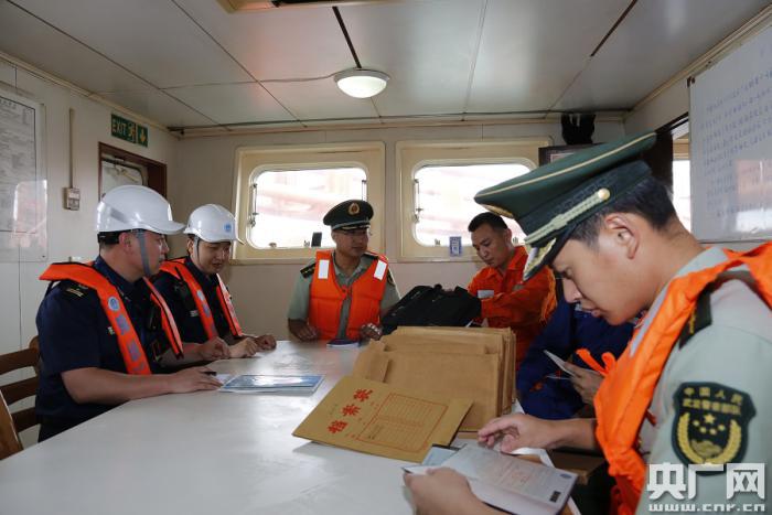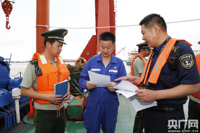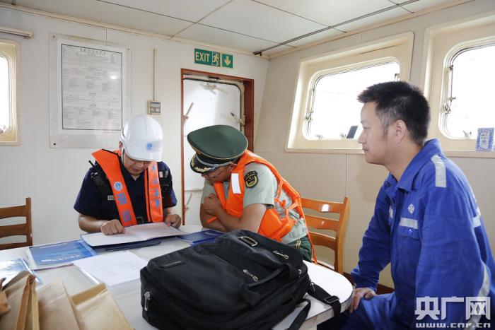 央廣網(wǎng)上海6月23日消息(記者傅聞捷 通訊員孫洪亮)今天上午,崇明海事局執(zhí)法人員聯(lián)合崇明邊防武警搭乘海事巡邏艇開(kāi)展“安全生產(chǎn)月”聯(lián)合執(zhí)法行動(dòng),現(xiàn)場(chǎng)對(duì)橫沙漁港水域停泊的一艘工程船開(kāi)展聯(lián)合檢查,并宣傳將于7月1日即將實(shí)施的《中華人民共和國(guó)船舶安全監(jiān)督規(guī)則》。