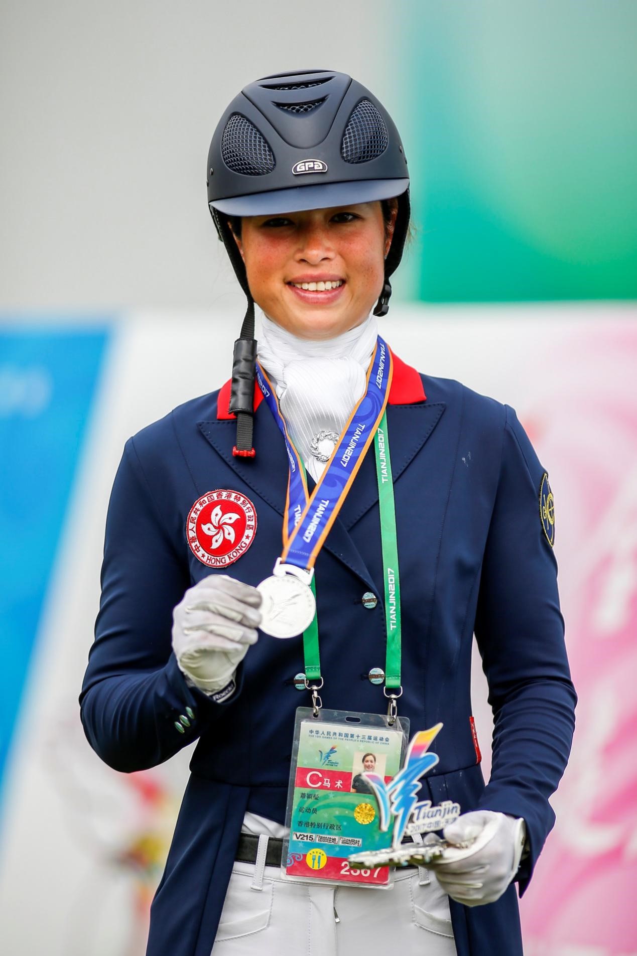 香港賽馬會(huì)馬術(shù)隊(duì)隊(duì)員黎嘉怡 于天津的全國(guó)運(yùn)動(dòng)會(huì)上,取得一面場(chǎng)地障礙個(gè)人賽銅牌。