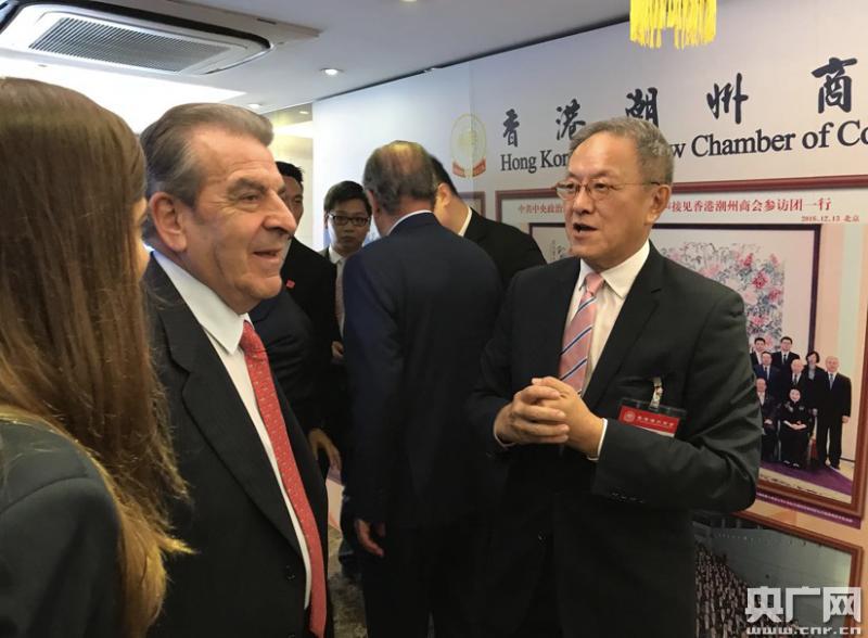 智利前總統(tǒng)、智利駐亞太地區(qū)特命全權(quán)大使弗雷·魯伊斯·塔格萊先生感謝香港潮州商會(huì)的熱情接待,并介紹智利的基本情況。他表示,智利是首個(gè)同中國(guó)建交的南美洲國(guó)家,首個(gè)承認(rèn)中國(guó)完全市場(chǎng)經(jīng)濟(jì)地位、同中國(guó)簽署雙邊自由貿(mào)易協(xié)定的拉美國(guó)家。智利對(duì)中國(guó)提出的“一帶一路”倡議表現(xiàn)出濃厚的興趣,希望能和中國(guó)加強(qiáng)在“一帶一路”領(lǐng)域的合作。他又表示,今次率團(tuán)來(lái)華參加“中國(guó)智利周”活動(dòng),選擇香港作為到訪的其中一座城市,看中的是香港作為國(guó)際金融中心的重要地位和背靠中國(guó)內(nèi)地的獨(dú)特優(yōu)勢(shì)。未來(lái)智利將加強(qiáng)和香港商界的合作,為中智兩國(guó)關(guān)系發(fā)展做出新的貢獻(xiàn)。