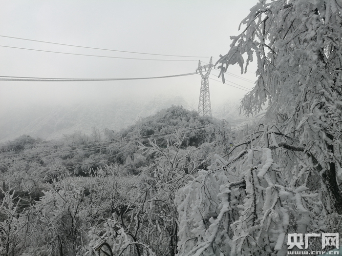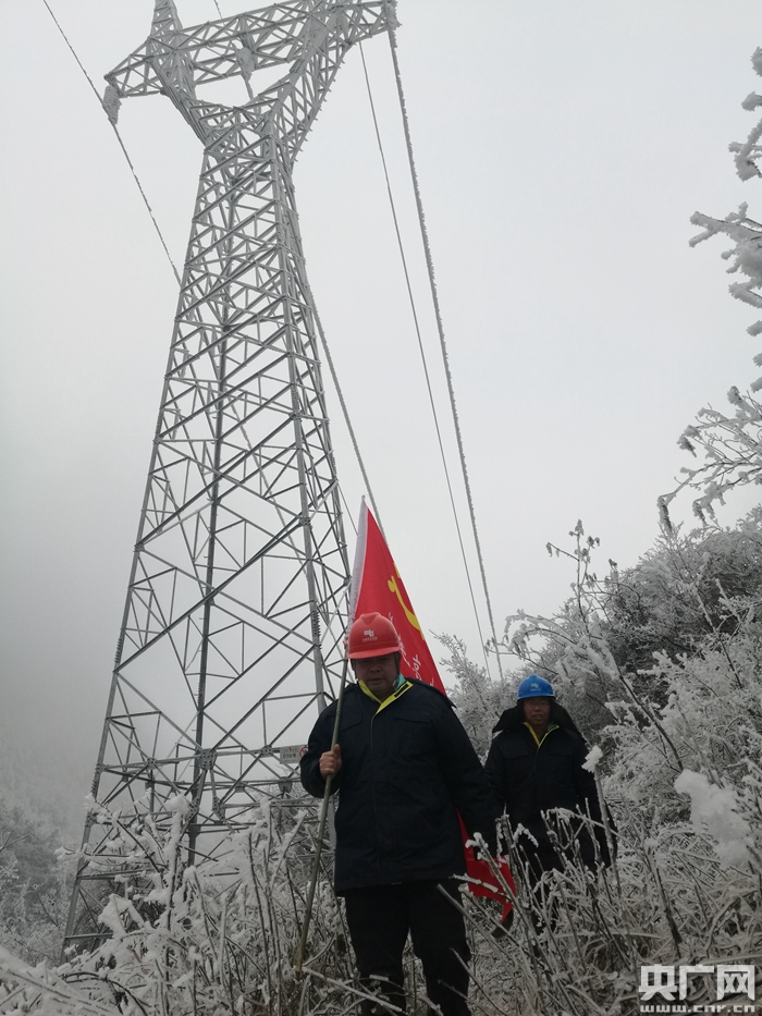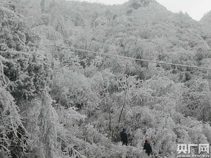 1月29日下午,記者與巡線工人一起進入都勻螺絲殼山頂。這是整個都勻市海拔最高、且每年凝凍最大、最寒冷的地方,每年冬季,山頂上漫山遍野白茫茫一片全被冰雪覆蓋。作為都勻供電局“電亮先鋒”黨員突擊隊隊員和線路運行巡視員工之一,每天面對嚴寒,深入凝凍最大的螺絲殼山頂巡線,對于都勻供電局線路運行二班班長毛光祥毛光祥來說已經(jīng)是家常便飯,他說:“我們班上12個人,從1月1號以后,我們就取消休假,每天走在這個山上,一個是路滑,天寒地凍,沒辦法就只有靠我們隊員自己拿鐮刀或柴刀在這個山水砍出一條路來,每個隊員基本上每天都要走五到六公里的線路,不間斷的巡視,保證我們的這個線路通暢!